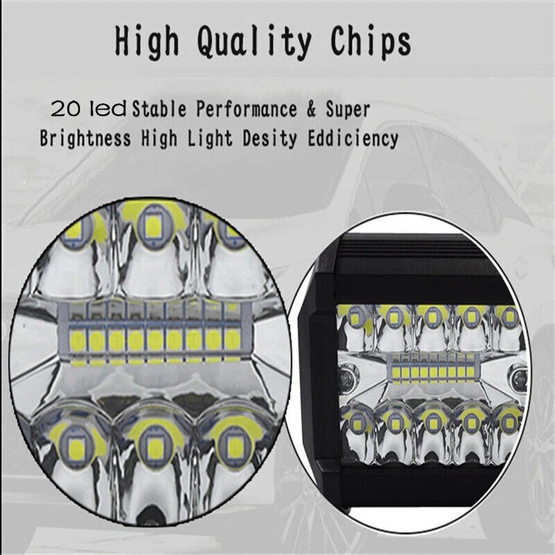 High quality LED chips produce powerful and ultra bright light to illuminate the dark road ahead. Provides a perfect balance between beam distance and coverage. It is popular both on road and off-road because the driver can see the road ahead and under the wheels.
