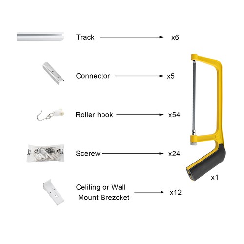 Track Kit with Hooks, Wall Mount Curtain Track, Large Size for Space 12ft - 18ft, Work with Grommet and Pinch Pleated Curtain