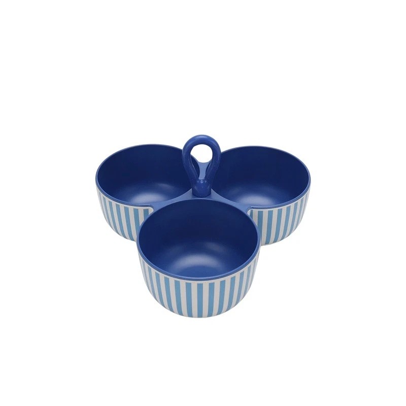 by Becky G. & Alejandra Bamboo Melamine Triple Condiment Server, Blue Stripe
