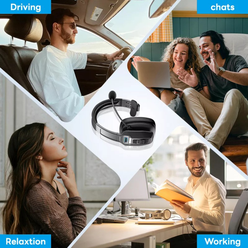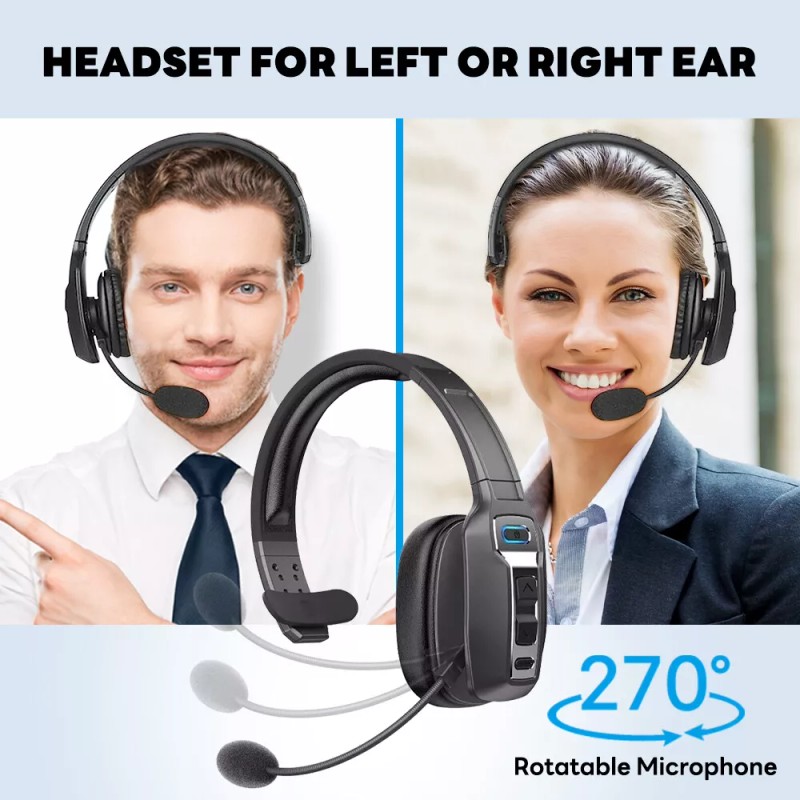 - 🎧 All-Day Comfort for Endless Listening Pleasure: Indulge in a comfortable listening experience all day long with our wireless headset. Designed with ultra-soft protein leather earcups featuring memory foam padding, it fits perfectly without exerting pressure on your ears. Whether you're engaged in lengthy listening sessions or phone calls, it ensures optimal comfort. The headset can be worn on either ear, and the 270-degree rotatable and curved microphone allows for flexible voice capture.