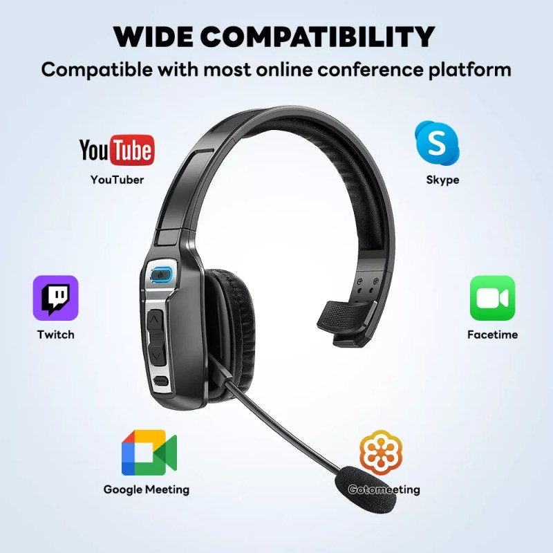 - 🗣️ Effortless Bluetooth Connection and Device Switching: The Bluetooth headset allows you to seamlessly connect two devices simultaneously. Whether you're in a video conference and receive a phone call, with just one click, you can swiftly switch to your calling device without missing any crucial connections. It seamlessly supports most Bluetooth-enabled devices, such as mobile phones, PCs, laptops, and computers, thanks to its Bluetooth 5.2 compatibility.