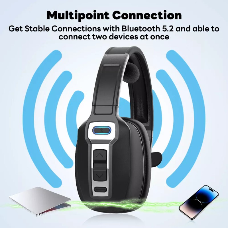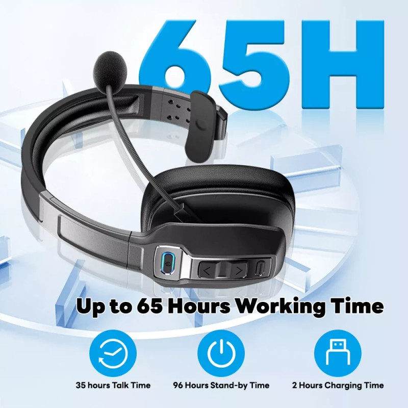 - 🎵 Extended Battery Life for Uninterrupted Usage: Say goodbye to power worries with our trucker headset. It offers up to 60 hours of working time on a single charge of just 2 hours. Enjoy stable and long-lasting performance for truckers, call centers, construction sites, warehouses, and more. Stay informed about battery levels with the remaining battery indicator and low battery voice reminder, conveniently accessible by connecting to your cell phone.