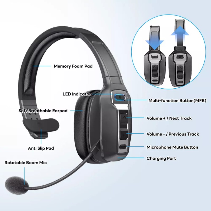 Adjustable headband & Comfortable Wearing & 270° Rotatable Microphone & Anti-slip pad