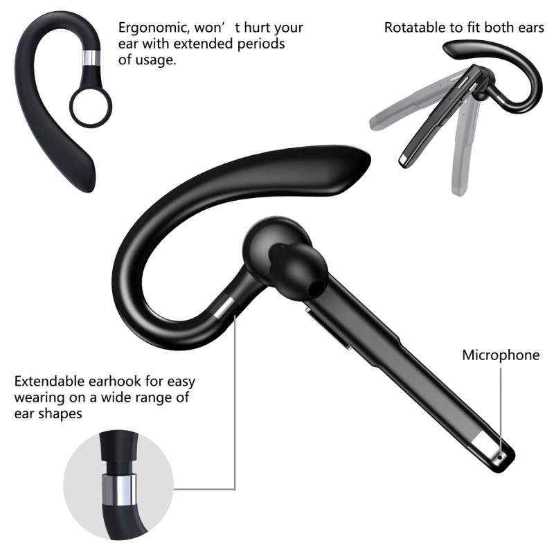 Rotating ear-hook design, universal for left and right ears, to meet users with different ear habits