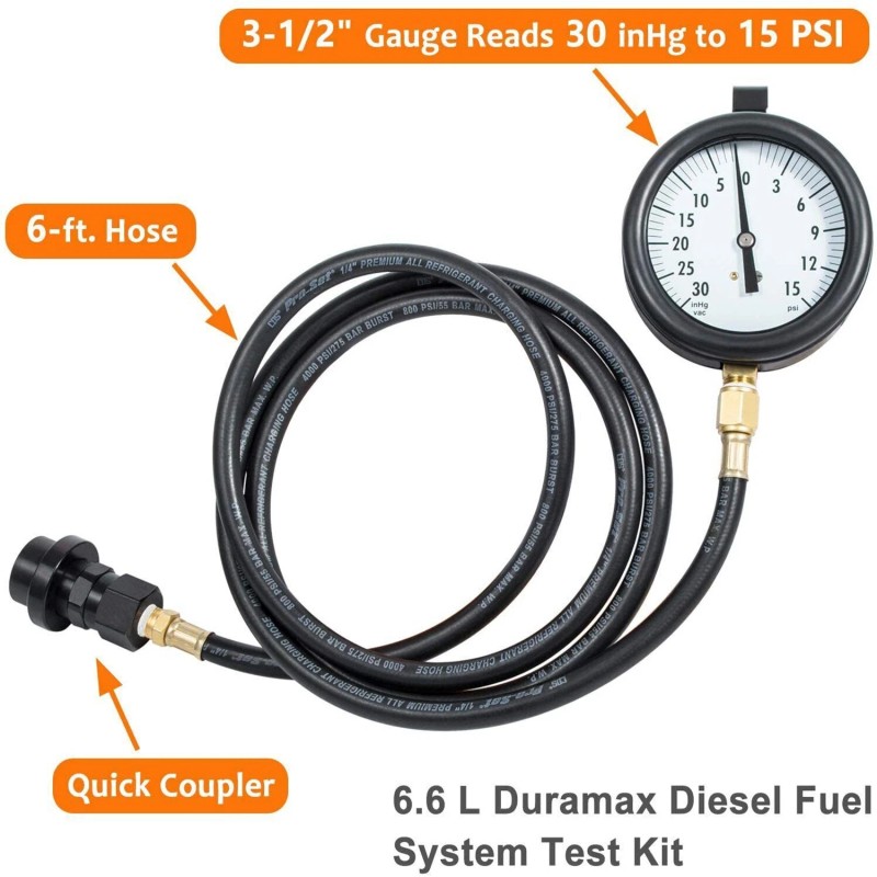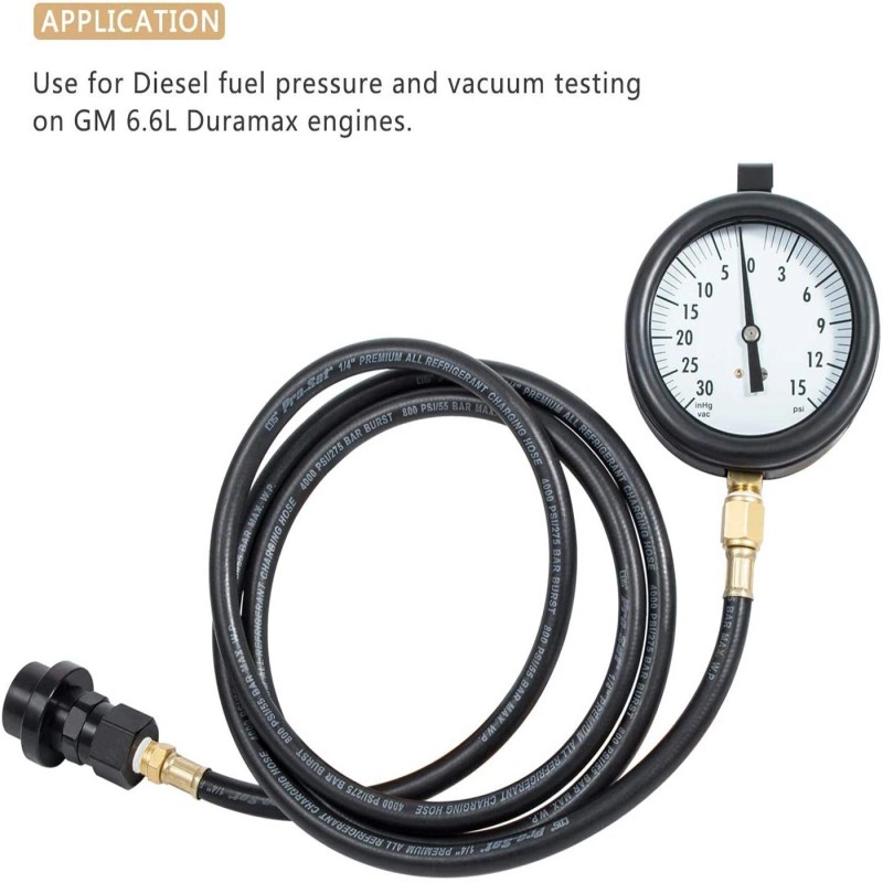 Use for Diesel fuel pressure and vacuum testing on GM 6.6L Duramax engines.