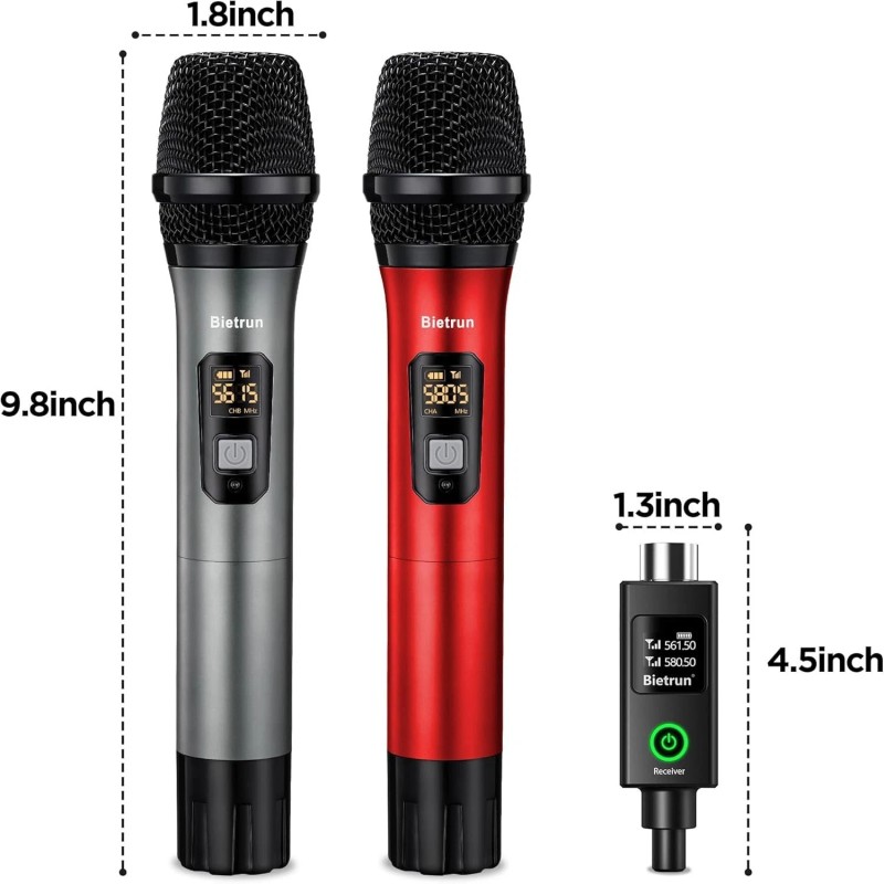 UHF Wireless Microphone Set - Dual Handheld, 160ft Range, Rechargeable Receiver