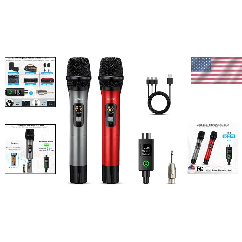 Unbranded UHF Wireless Microphone Set - Dual Handheld, 160ft Range, Rechargeable Receiver