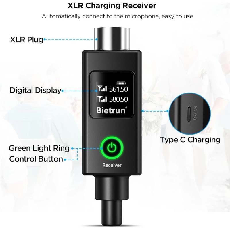 • Features: Plug and Play, Dynamic Microphone, Rechargeable Receiver, Automatic Connection, Built-in Battery, Adjustable Frequency Channels, Omnidirectional Polar Pattern, Anti-Howling, Anti-Jamming, Signal Stability, Lightweight Metal Design