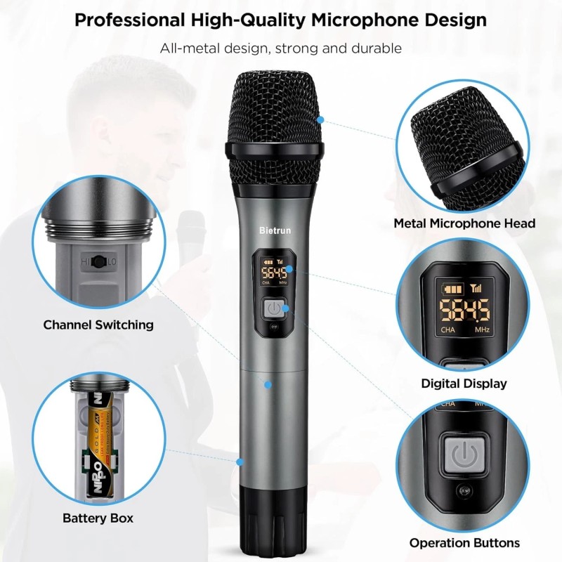 • Handheld microphones feature an all-metal design for durability, ensuring they are harder, lighter, and more wear-resistant.