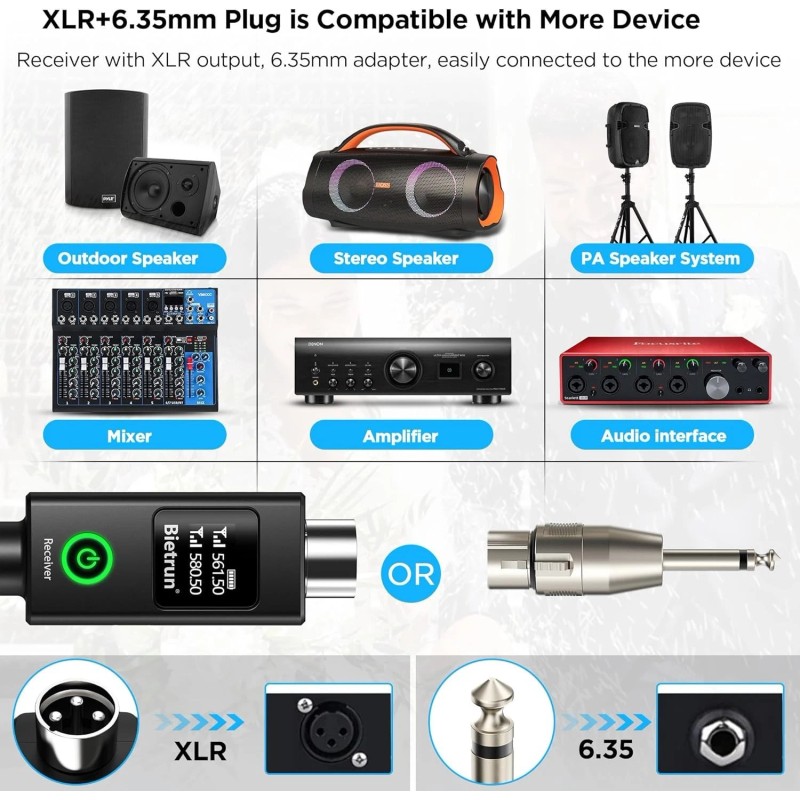 • Built-in newly designed UHF wireless core, boasts an impressive transmission distance upgrade of 160 feet in open areas.