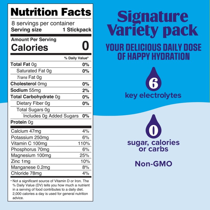 - Variety Pack Flavors: Pink Lemonade, Lemonade, Blue Raspberry, and Watermelon