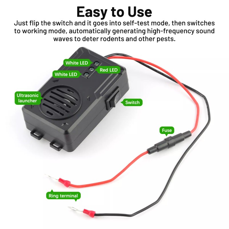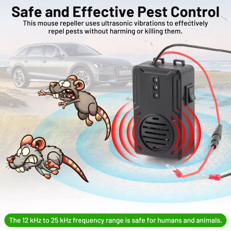 5. Wide applicability: This electronic mouse drive is suitable for various types and sizes of vehicles. It can also be used in homes, garages, warehouses, and other places where pests may exist. Its low power consumption, non toxicity, and non-interference with electrical equipment make it an ideal pest control solution suitable for any environment.