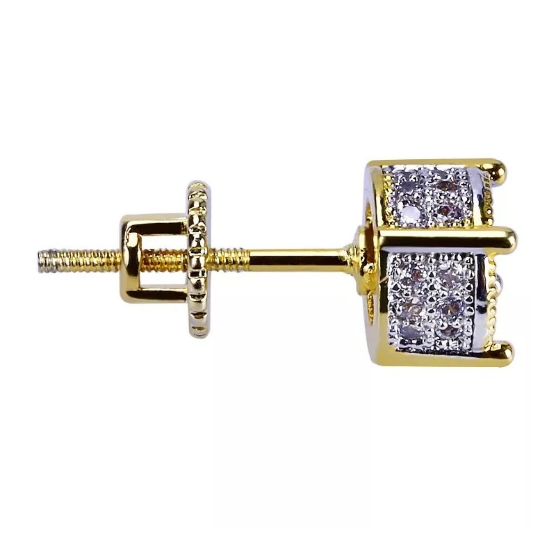 Unbranded Unisex Round Solitaire Hip Hop 14K Gold Silver CZ Screw Back Stud Earrings Gift