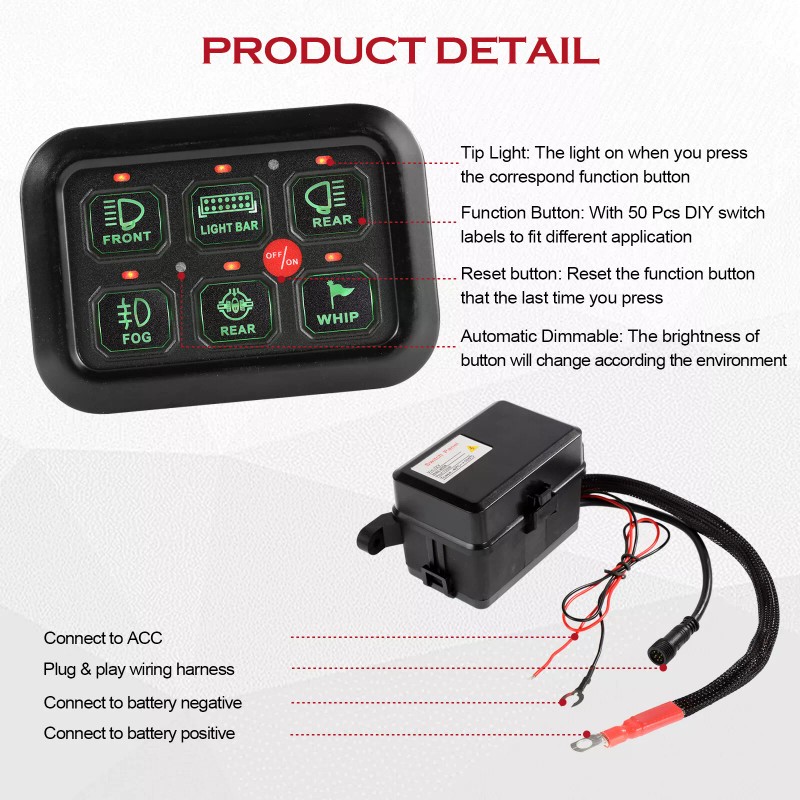 * Universal 6 switch panel relay system. power up to 6 lights & accessories from one convenient place.
