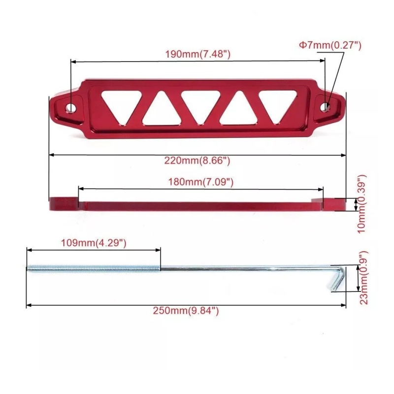 • Upgrade Your Engine Bay with Our High Quality Anodized Aluminum Battery Tie down. This Item Is Designed to Keep Your Battery Held down Securely and They Come in Multiple Colors to Add an Aesthetically Appealing and Cleaner Look to Your Engine Bay.