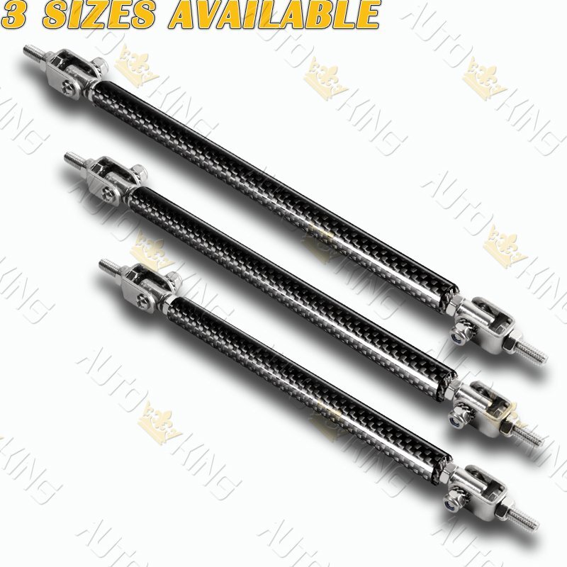 UNIVERSAL CARBON LOOK ADJUSTABLE 100MM BUMPER LIP SPLITTER STRUT ROD TIE BAR 2PC