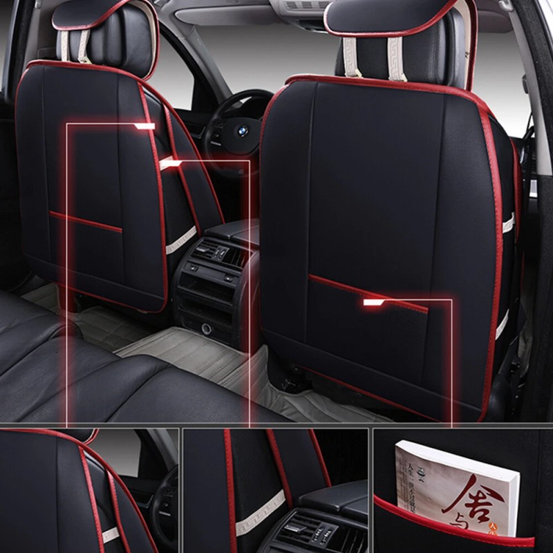 Unbranded Universal Full Set Luxury 5 Seats PU Leather Front & Rear Car Seat Cover Cushion