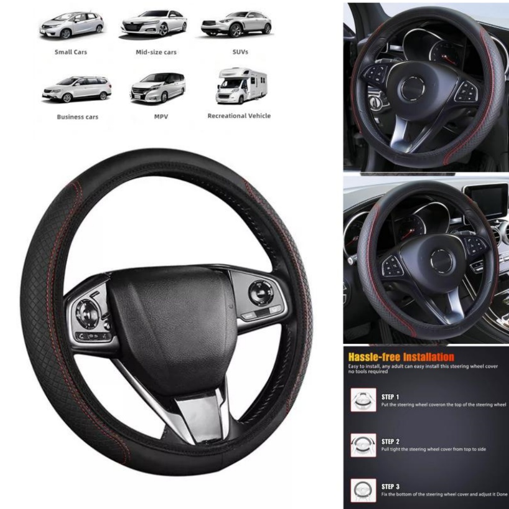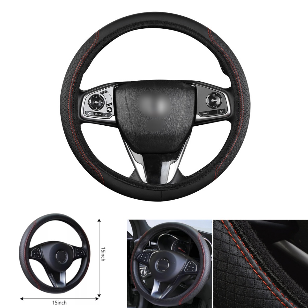 Unbranded US 15"/38cm Car Steering Wheel Cover Leather Anti-slip Car Accessories Universal