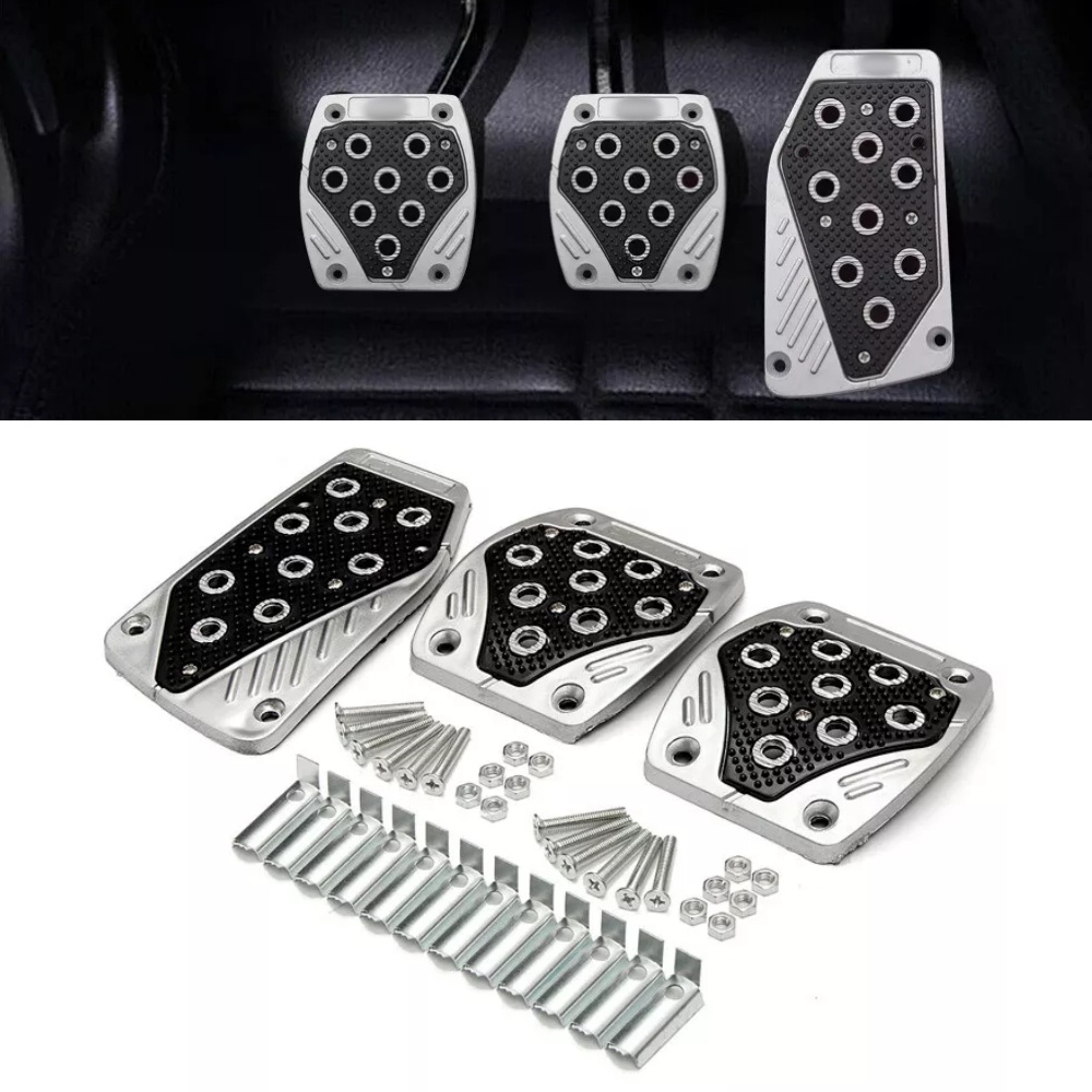3PCS Car Foot Pedals Pad Cover For Brake Clutch Accelerator Aluminium alloy+ PVC