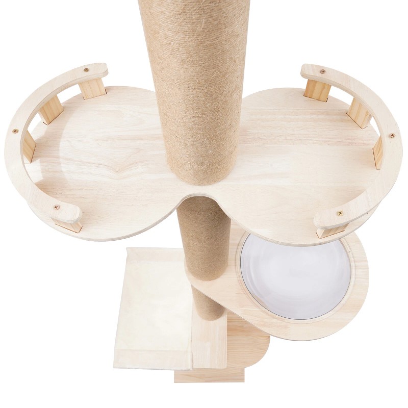 Premium Material: This Cat Tree Is Made of Premium Solid Pine Wood, Paper Tubes, and Hemp Ropes Without Paint, Making It Strong, Long-lasting, Environmental-friendly, and Safe for Your Cat.