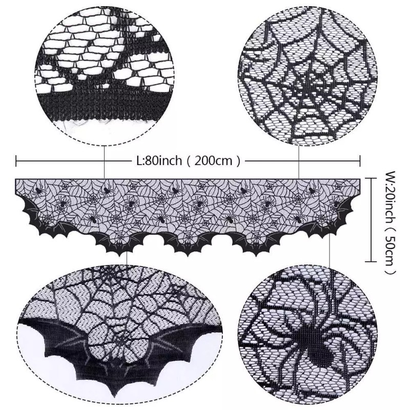 2.Size: 80 x 20inch Halloween black lace fireplace mantle scarf suitable for most of fireplaces and tables