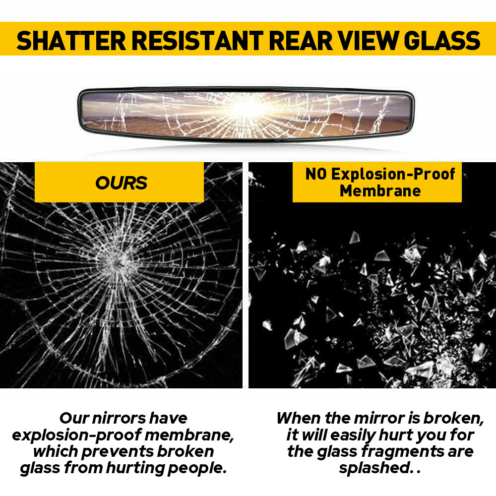 There is an explosion-proof film on the back of our mirror, it can prevent broken glass from hurting people. The high-impact ABS housing frame wraps tightly around the rear-view mirror for better wind and shock protection when driving or racing on rough roads.