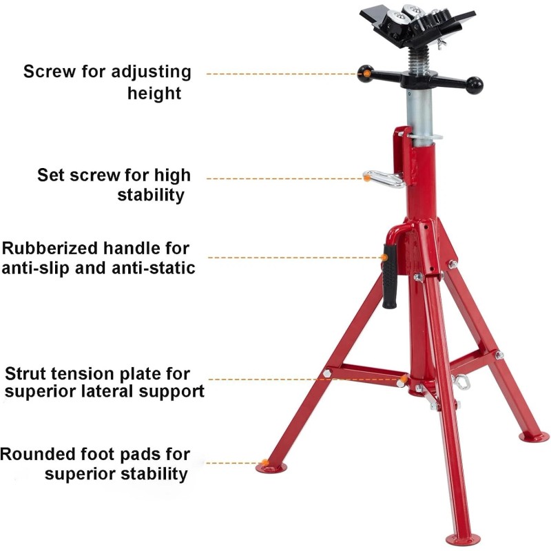 Unbranded V-Head Pipe Stand Pipe Jack Stand 2500Lb Capacity 4-Ball 28"-52" Height