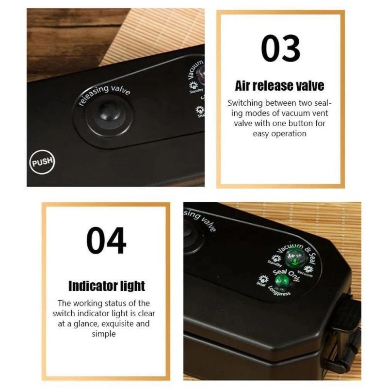 Cooking and meal preparation will become easier, more economical and faster.Effectively Increase food shelf life.You could use it to seal meat, seafood, fruits, vegetables, salads, biscuits, beans, dried fruits, etc. Let us reduce waste and bring happiness. A food vacuum sealer machine is a great helper for your kitchen. You will find that the food saver machines are fabulous for preserving food in the fridge and keeping food fresh longer with the machine. Supported 2-in-1 function combined with vacuum and sealing according to your usage needs The foods can keep the original flavor.