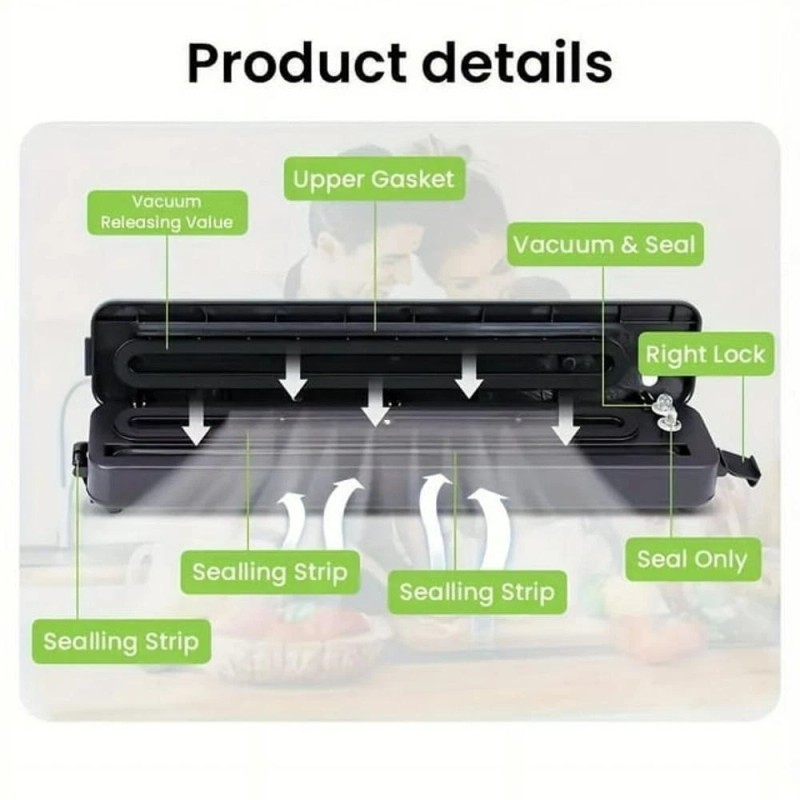 If you want to preserve food for longer time or you are crazy about bulk food purchases and find yourself struggle to divide it up and keep its fresh taste at the same time, vacuum sealer machine absolutely exceed your expectations.Stylish and sleek design making meat sealing machine with roll bags a lot easier to store or even keep on the counter. Fabulous for preserving food in the fridge and keeping food freshness longer with the machine. Supported 2-in-1 function combined with vacuum and sealing according to your usage needs.