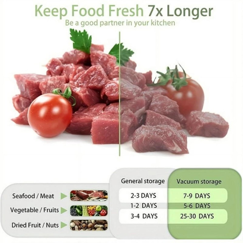 This vacuum sealer is aim to keep your meat, vegetables, and leftovers fresh and flavorful, above 10 times longer storage than traditional refrigeration, frozen storage and normal conditions
