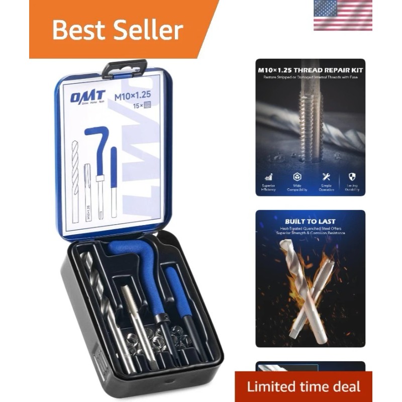 Versatile M10x1.25 Thread Repair Kit - High-Speed Steel Drill & Durable Inserts