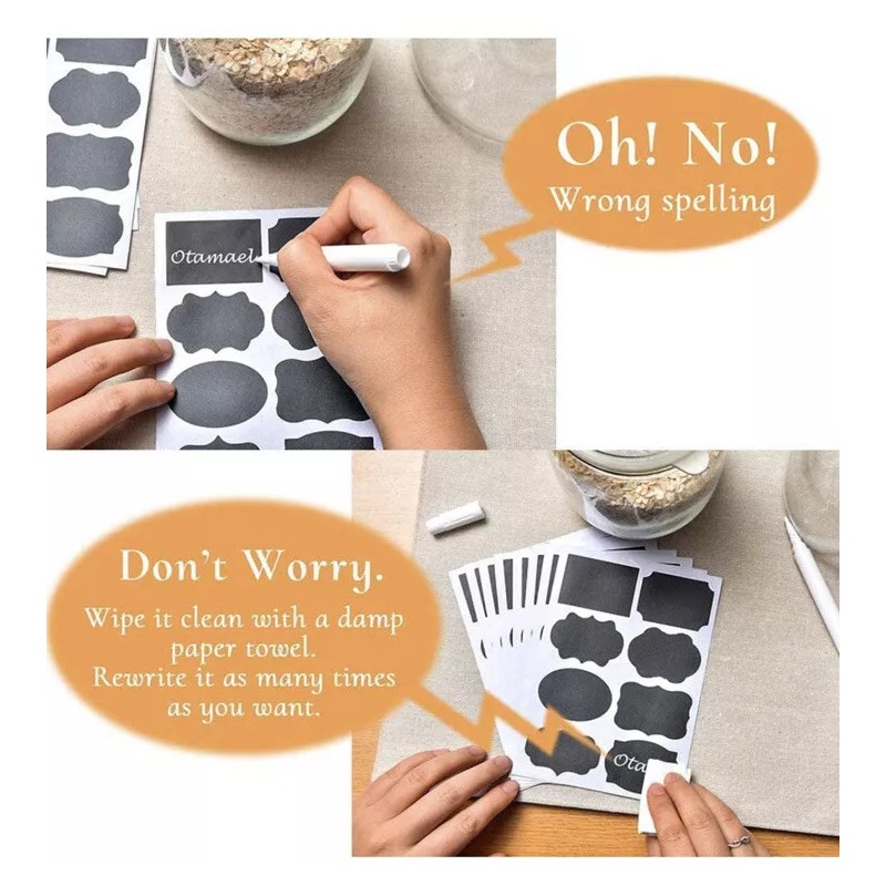 Unbranded Vinyl Reusable Chalkboard Labels for Pantry & Kitchen w/ Chalk Pen ...