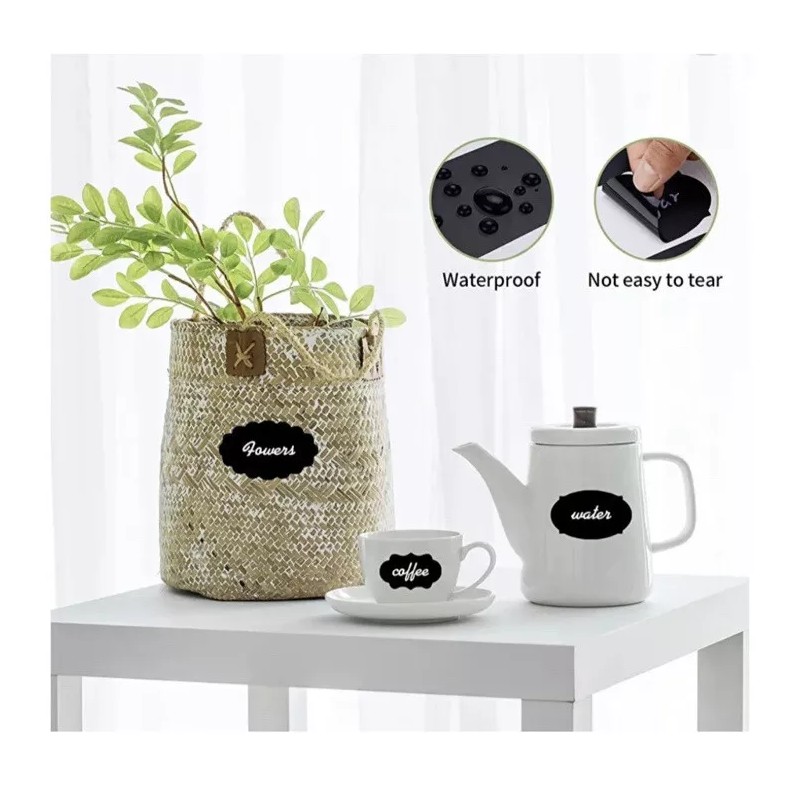 Removable Waterproof Chalk Labels & Marker for Glass Storage Jars, Reusable Black Vinyl Plastic Adhesive Tag Paper for Canister, Container, Bottle, Food, Spice