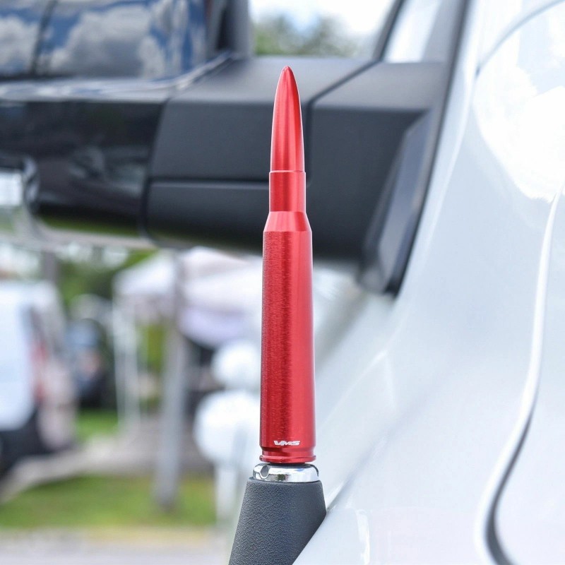THIS AUCTION IS FOR 1 BRAND NEW VMS RACING BULLET ANTENNA. THE VMS RACING BULLET ANTENNAS ARE MACHINED FROM T-6061 CNC BILLET ALUMINUM AND ARE THEN HARD ANODIZED IN RED FOR DURABILITY AND A SHOW QUALITY FINISH. THE VMS LOGO IS LASER ENGRAVED ON THE BASE OF EACH ANTENNA. THE 50 CALIBER ANTENNA MEASURES 5.5" IN LENGTH AND INCLUDES AN ADAPTER FOR AN EASY INSTALLATION.