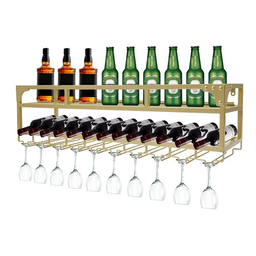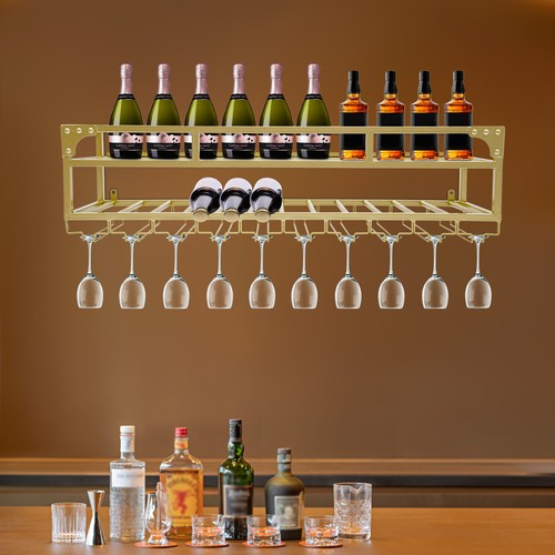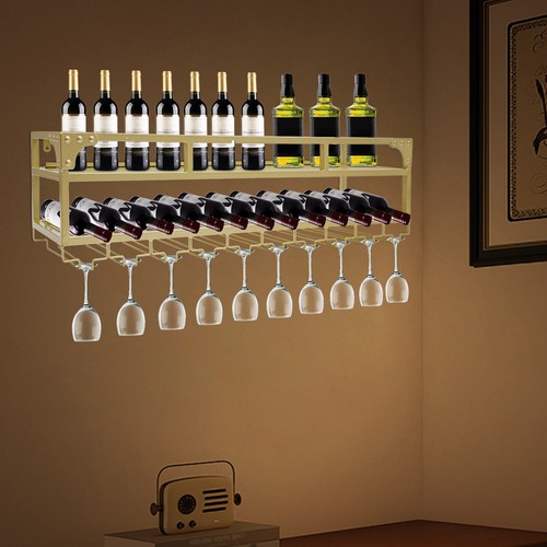 Unbranded Wall-Mounted Wine Rack, Industrial Wine Rack with Glass Holder, Liquor Shelves