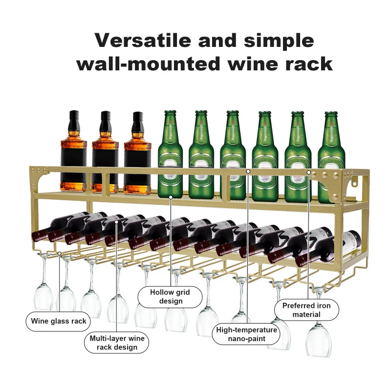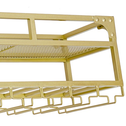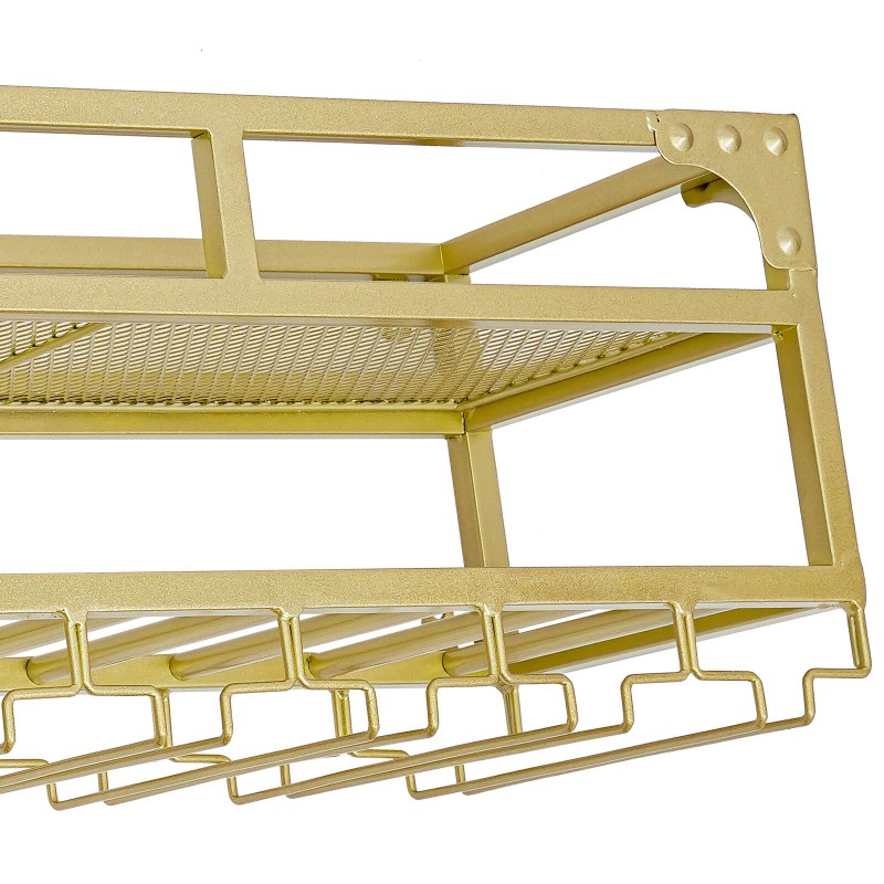 This wall-mounted wine rack combines a sleek design with a powerful industrial vibe. Its space-saving wall-mounted installation makes it a practical choice. The mesh partition ensures proper ventilation, keeping your glassware and wines clean and fresh. With ample storage space, it meets your storage needs while enhancing the home with a personalized decorative touch.