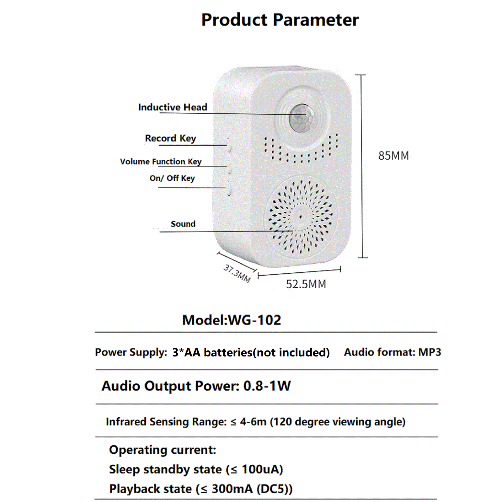 Welcome Infrared Chime Doorbell Wireless Adjustable Volume Door bell with Recording function