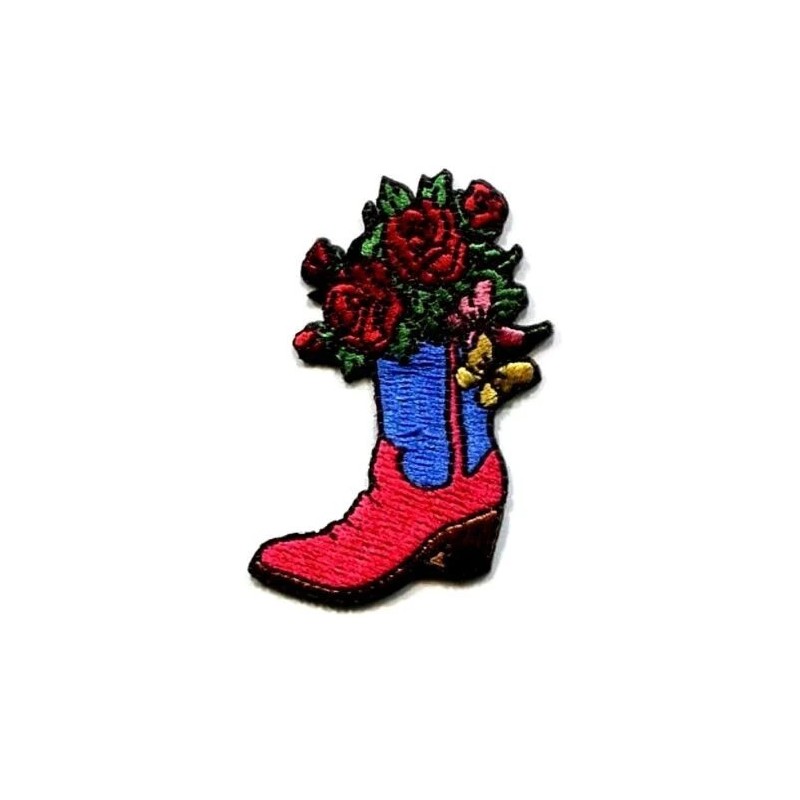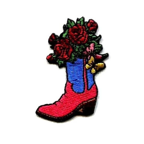 Unbranded WESTERN BOOT WITH FLOWER IRON ON PATCH 1 5/8 X 2 1/4 inch