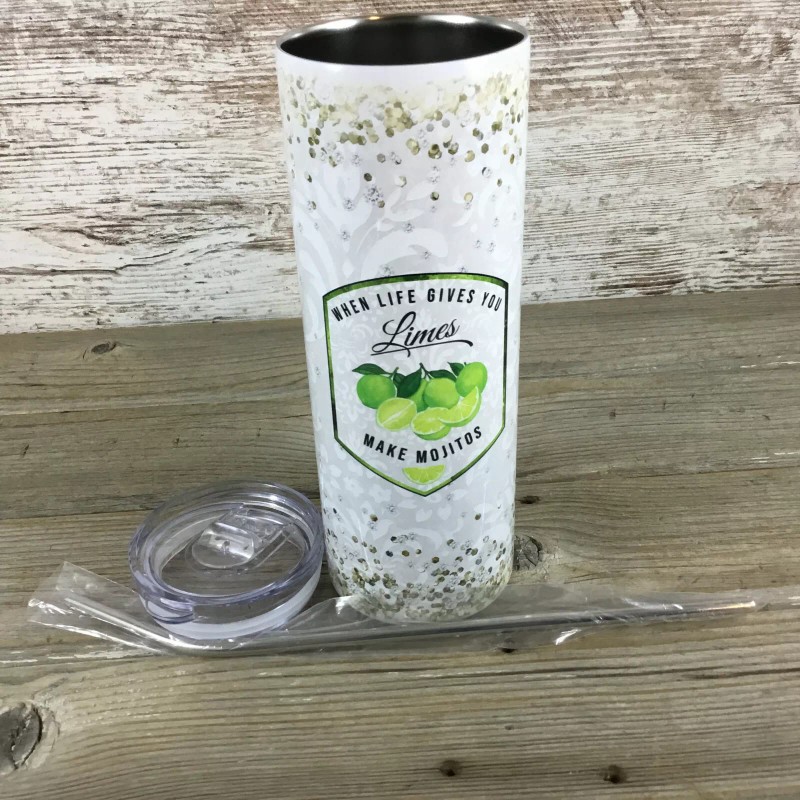 Unbranded  When Life Gives You Limes Make Mojitos 20 oz Skinny Tumbler with Straw & Lid