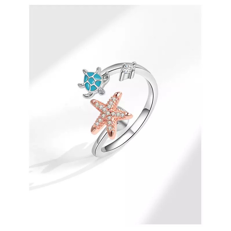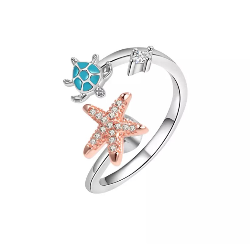 Unbranded White Gold Plated Spinning Starfish & Turtle CZ Anxiety Silver Open Ring PE63
