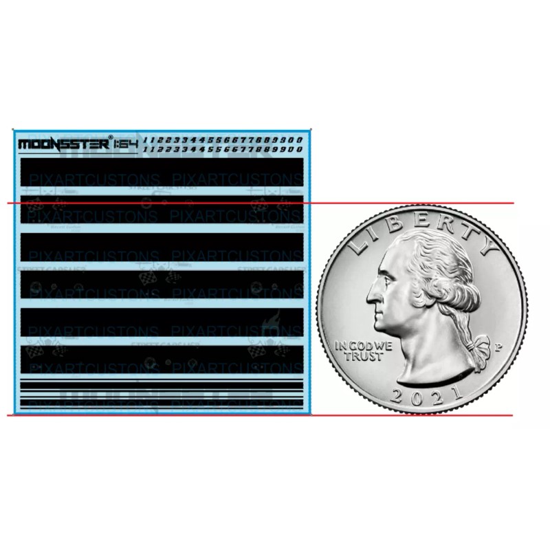 Unbranded White Toner 1/64 Water Slide Decals Black Stripes & Tiny Numbers For Hot Wheels