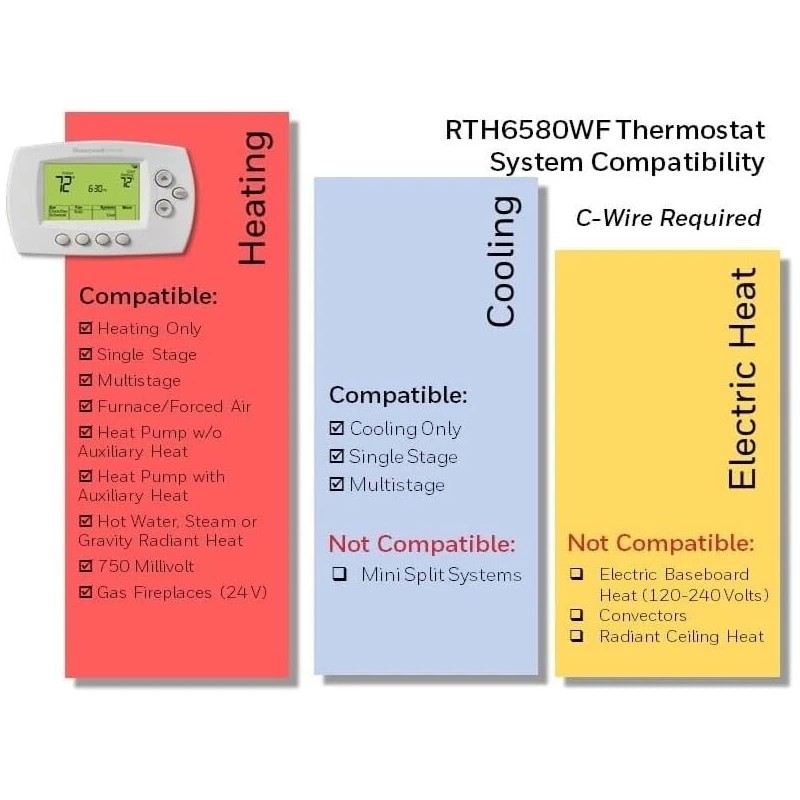 Compatible Product: Heat Pump,Universal,Air Conditioner,Furnace | Smart Home Protocol: Wi-Fi | Mounting: Wall-Mounted | Material: Plastic |