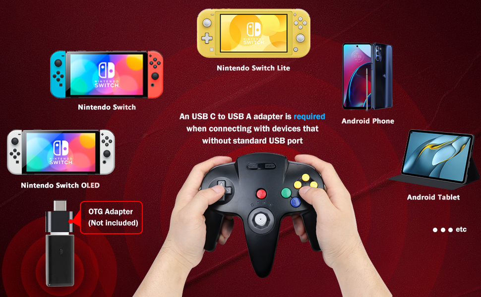 Wide CompatibilityCompatible with Nintendo 64 console, Switch online, Pc(Mac Linux Windows) ,Andorid phone(with OTG cable),Raspberry pi ect |