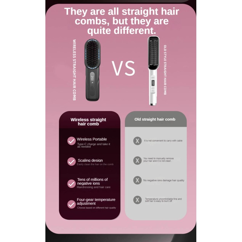 Unbranded Wireless Straight Hair Comb 4 Speeds Beauty Hair Styling Tool