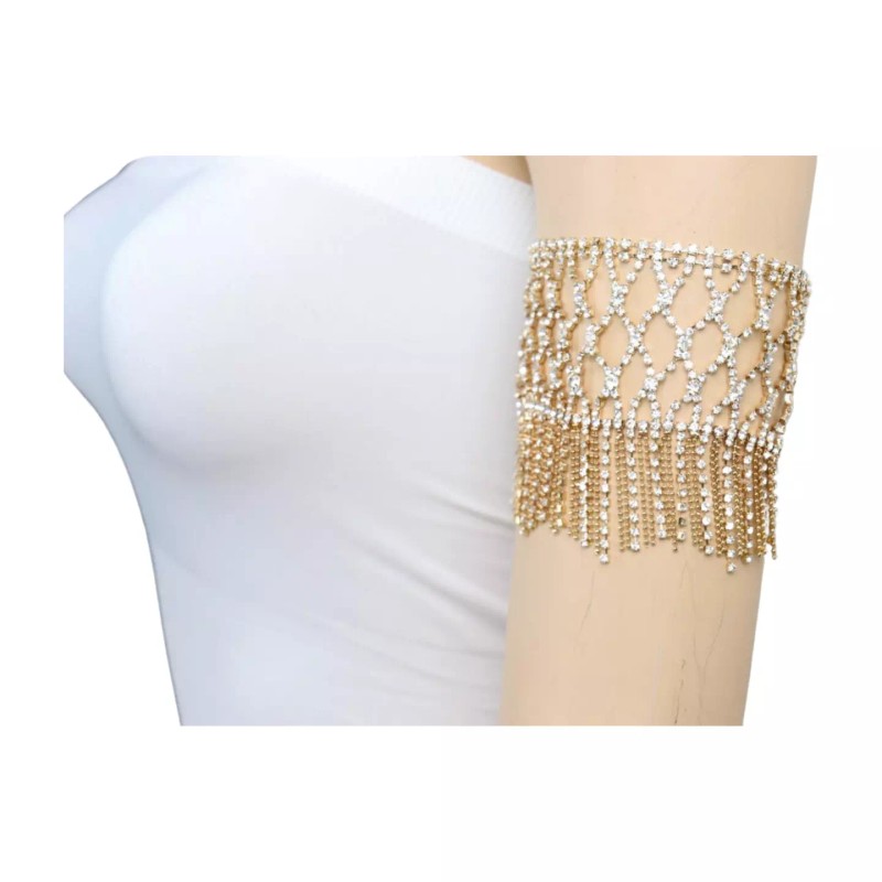 Unbranded Women Gold Metal Tassels Fringes Upper Arm Bracelet Elastic Band Silver Wedding