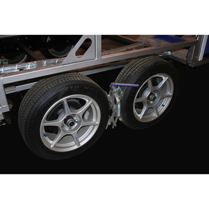 Provides added stabilization and prevents tire shifts by applying opposing force to tandem tire applications; As opposed to other chocks, the X-Chock works with the tires' natural movement instead of against them; Fits even the tightest of applications retracting down to 1-3/8" and extends to 10"; Plated ratchet wrench with comfort bumper included; Lightweight, easy to store; Lockable for added security with optional 28015 Pad Lock