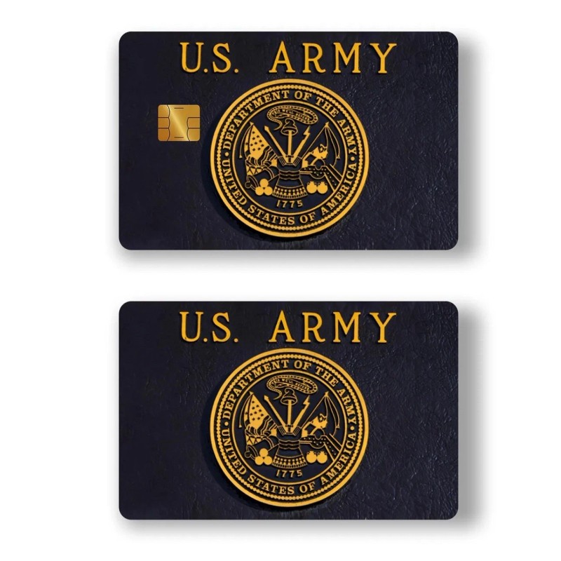 UNITED STATES U . S. ARMY CREDIT DEBIT CARD SKIN STICKERS LOT x2. Gold and Black color. 1 set of 2 thickened frosted credit card stickers. Suitable for credit cards, bank cards, debit cards, bus cards, removable self-adhesive decorative card stickers, scratch-proof, stain-proof, personalized decorative stickers. EXCELLENT CRISP SKIN SET. GO USA!!! GO ARMY! Free ship. Multibuy discount. Questions welcome!🇺🇸🇺🇸🇺🇸🇺🇸🇺🇸