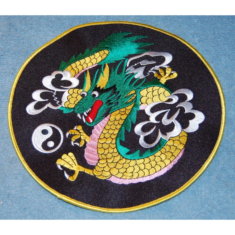 Unbranded Yellow Dragon On Black Background Round LARGE (7 3/4") Embroidered Patch, New