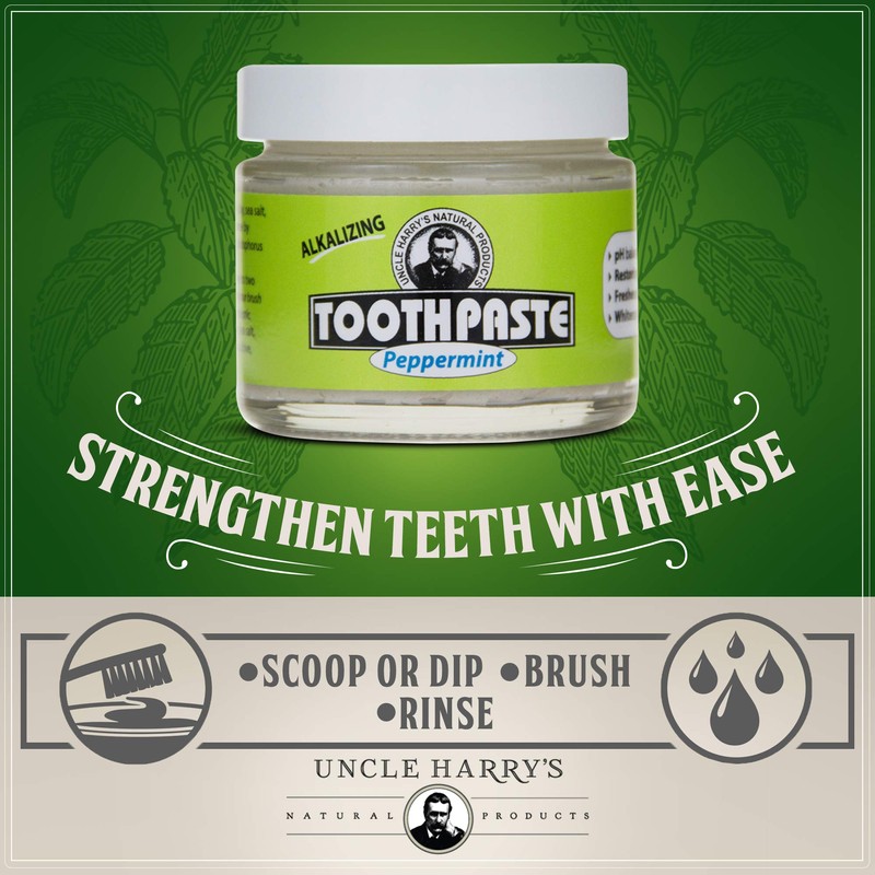 Uncle Harry's Natural & Fluoride-free Remineralizing Toothpaste - Freshens Breath & Strengthens Enamel - Peppermint, 3 Ounce (Pack of 1)