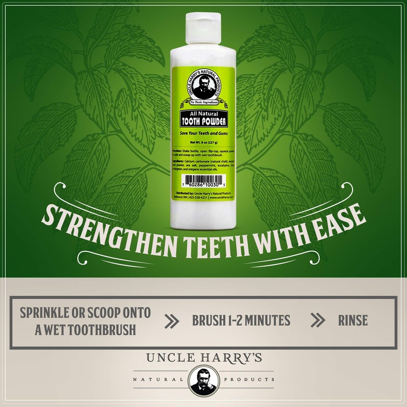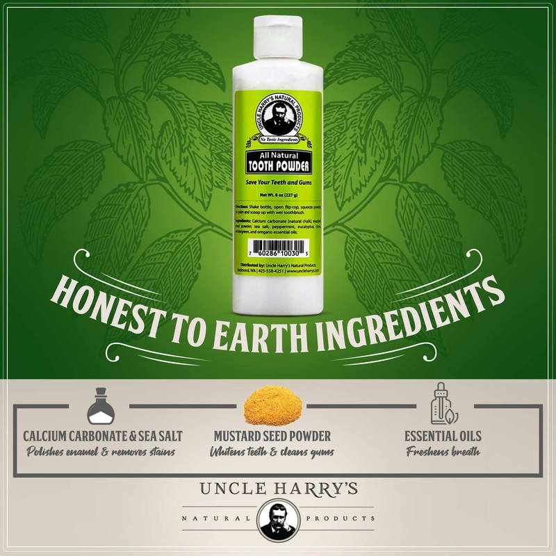 - ORAL HEALTH HERO - Save your teeth and gums with Uncle Harry's tooth powder. Our concentrated powdered paste encourages healthier tooth enamel by nourishing teeth with calcium, magnesium, and phosphorus. It also helps maintain a naturally alkaline pH that is best for oral health and dental hygiene.